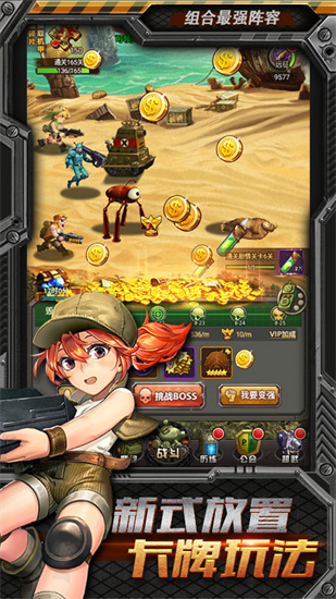 1、是一款由著名游戏合金弹头开发制作的全新放置类卡牌手游。
