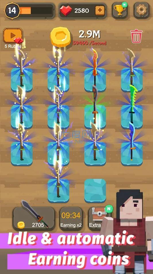 2、把不同的宝剑进行合并,能帮助角色提升宝剑的等级。