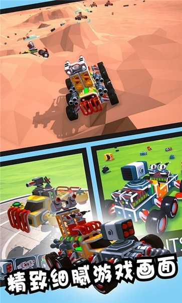 1、玩家需要在地图中找到各种各样的汽车零件,收集各种方块来创造一个超级强大的战车;