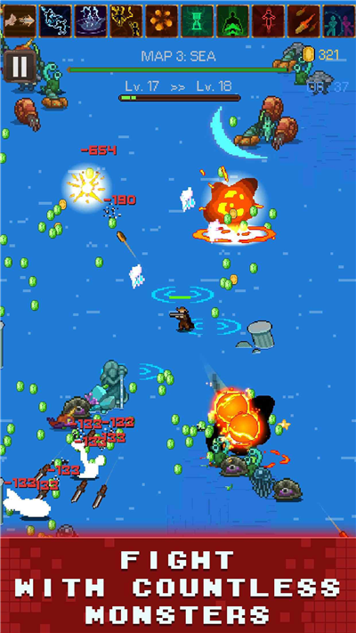 3、战胜更多的敌人,挑战生存难题,经历各种考验,打败boss。