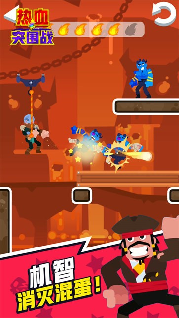热血突围战游戏上面的各种内容都是相当的有趣的,全新的2D游戏场景给我们带来最优质的游戏画面感,我们一定要很好的去进行着突破,不断的去把这些敌人全部都进行着消灭,超级多的陷阱等着我们去规避掉哦,我们一定要把自己的各种眼力见去变得更加的清晰,才能够更好的去闯关。