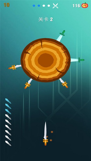 2、玩转缝线,多重背景,将所有飞刀插在旋转的圆盘上,挑战你的视力。