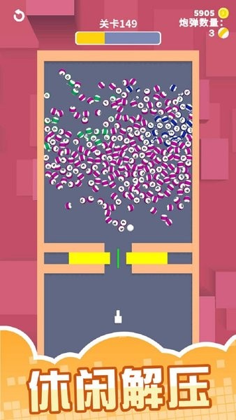 1、玩家可以自由控制大炮发射弹球,让场景中都充满弹球,感受弹球爆炸的乐趣。