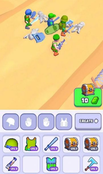2、组合不同的物品,为您的士兵创造更令人印象深刻和更酷的装备。作为领导者,您需要优化他们的装载,并确保他们拥有在战斗中取得成功的最佳装备。