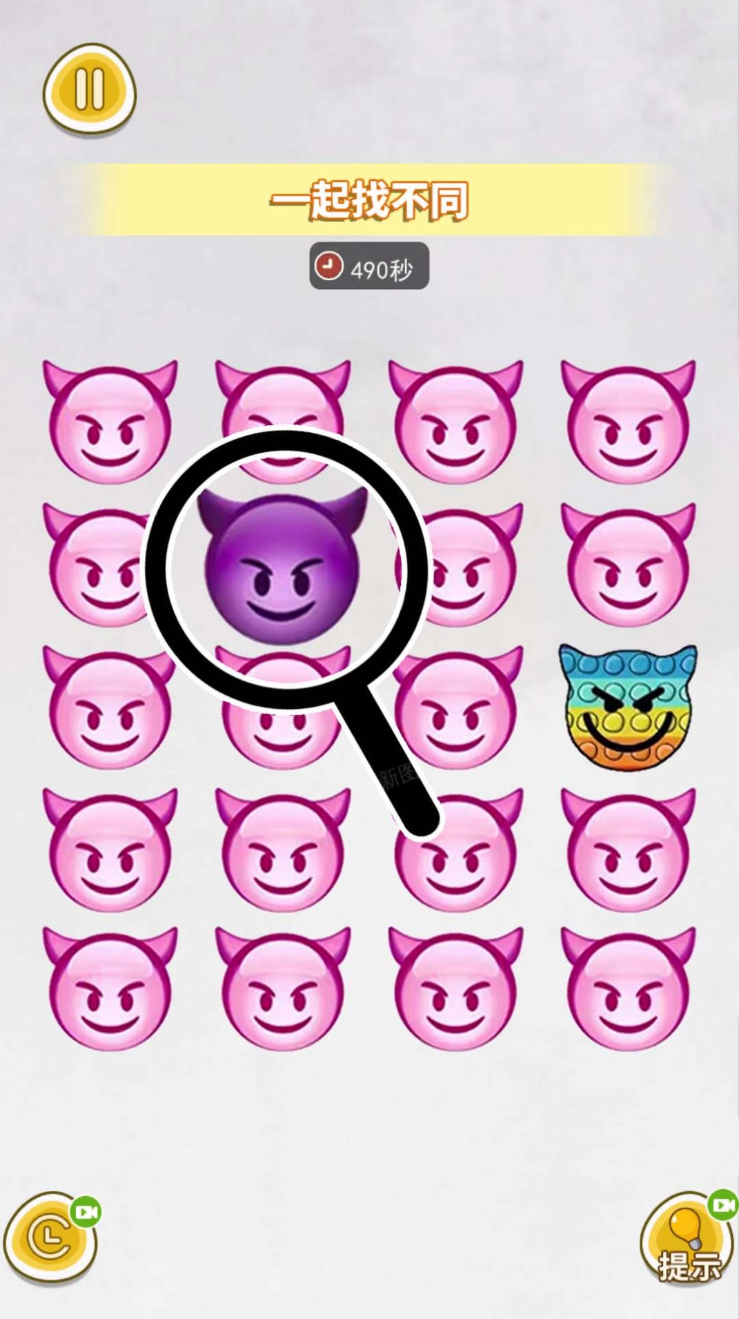 1、游戏中的图片有各种各样的表情包,你需要找到与其他表情包不同的那一个;