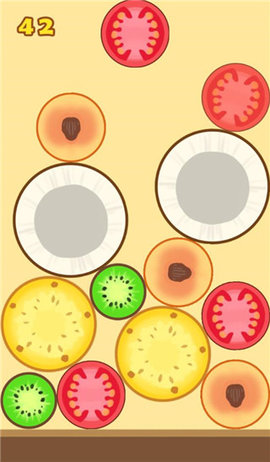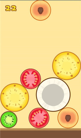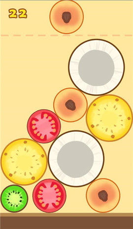 1、游戏页面顶部会随机出现一个水果。每个水果的大小都不同。点击你想要放置水果的位置,水果就会掉落。(类似于俄罗斯方块)