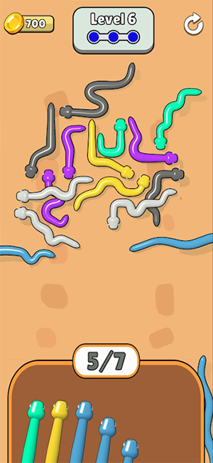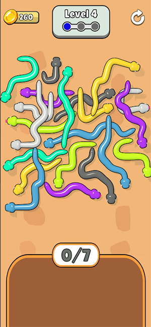 1、智力挑战:匹配3条相同颜色的蛇,通过点击移动蛇来消除它们。需要灵活的思维和快速的决策来提高玩家的智力水平。