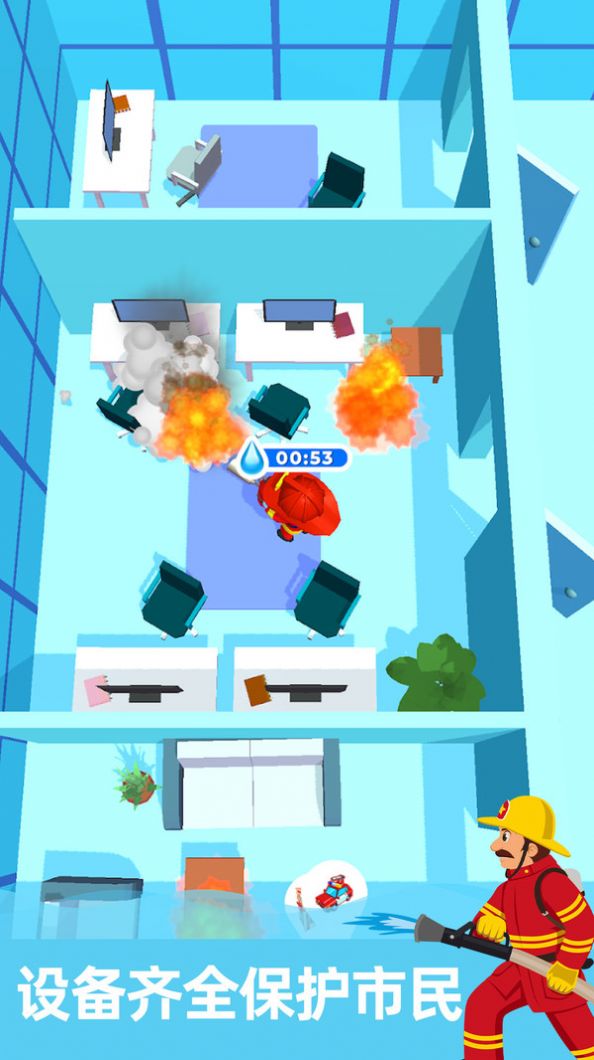 2、不同类型的救援任务,包括救火、救人、扑灭火源等,玩家需要根据具体情况做出相应的决策。