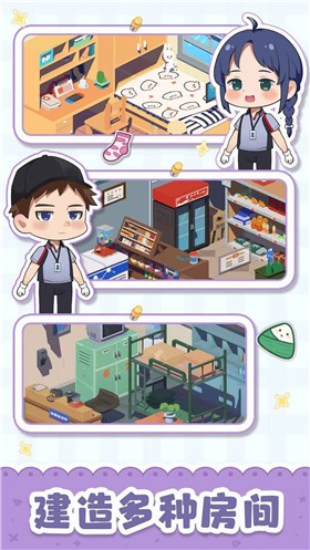 2、可爱的动画风格,这种画风让你在玩的时候各方面的体验都非常舒服,而且操作简单。日常管理和收租相关操作全部通过手指点击完成,轻松有趣。