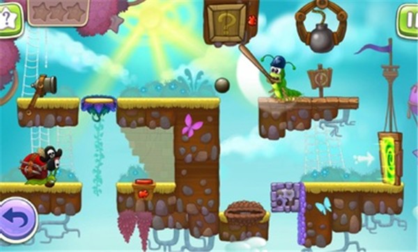 1、在开始游戏之后观察整个关卡,早先一部来制定蜗牛鲍勃的行径;