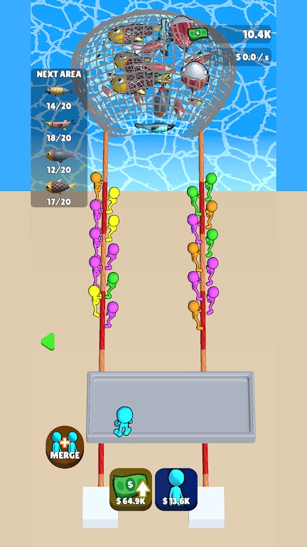 3、升级渔船容纳更多的渔夫和鱼获,从钓鱼岛网鱼
