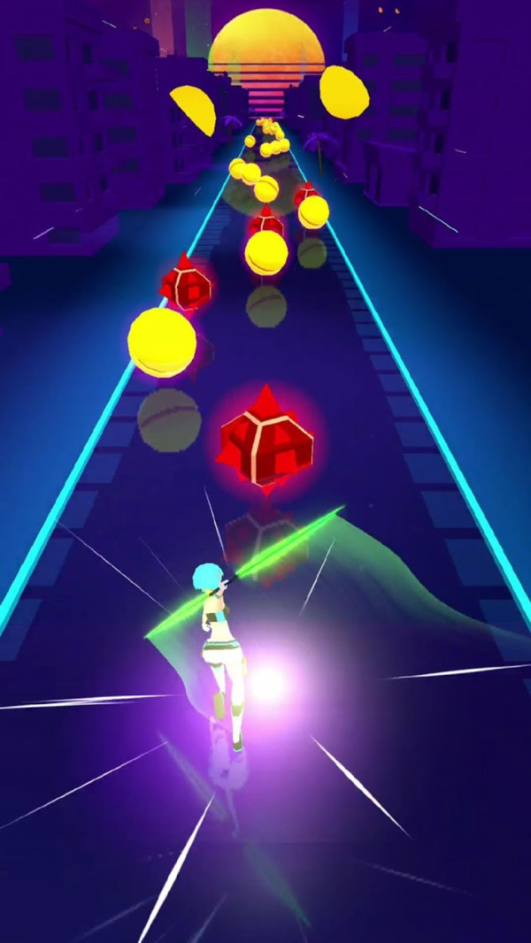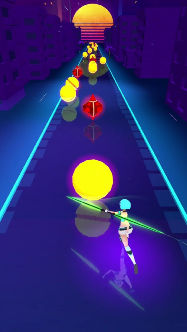 1、赛博朋克光剑mod手机版下载是一款休闲游戏,玩家需要使用光剑来打破障碍。