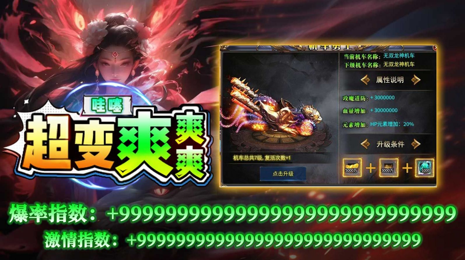 哇噻超变爽爽爽是一款热血的传奇游戏,玩家可以在游戏内体验到许多精彩的内容,丰富的游戏场景带来了很好的体验,这里的职业很多玩家都是可以选择的,每个职业的技能都是不一样的,丰富的场景十分的精美逼真,游戏内的装备很丰富,赶紧来下载体验试试吧。