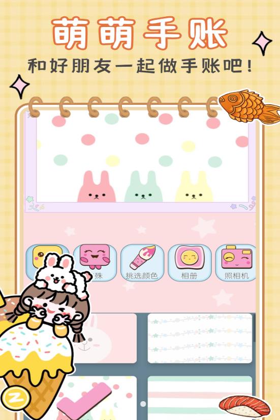 1、玩家可以根据自己的想法去制作一个创作,打造独一无二的手账出来;