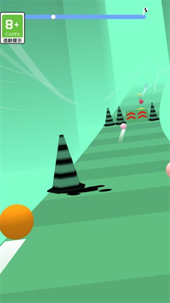 3、游戏玩法操作简单,只需左右滑动屏幕的方式操控小球,一次次破纪录;