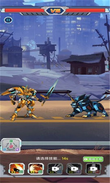 3、根据敌人的不同,选择不同的道具武装你的超能机甲并击败他。
