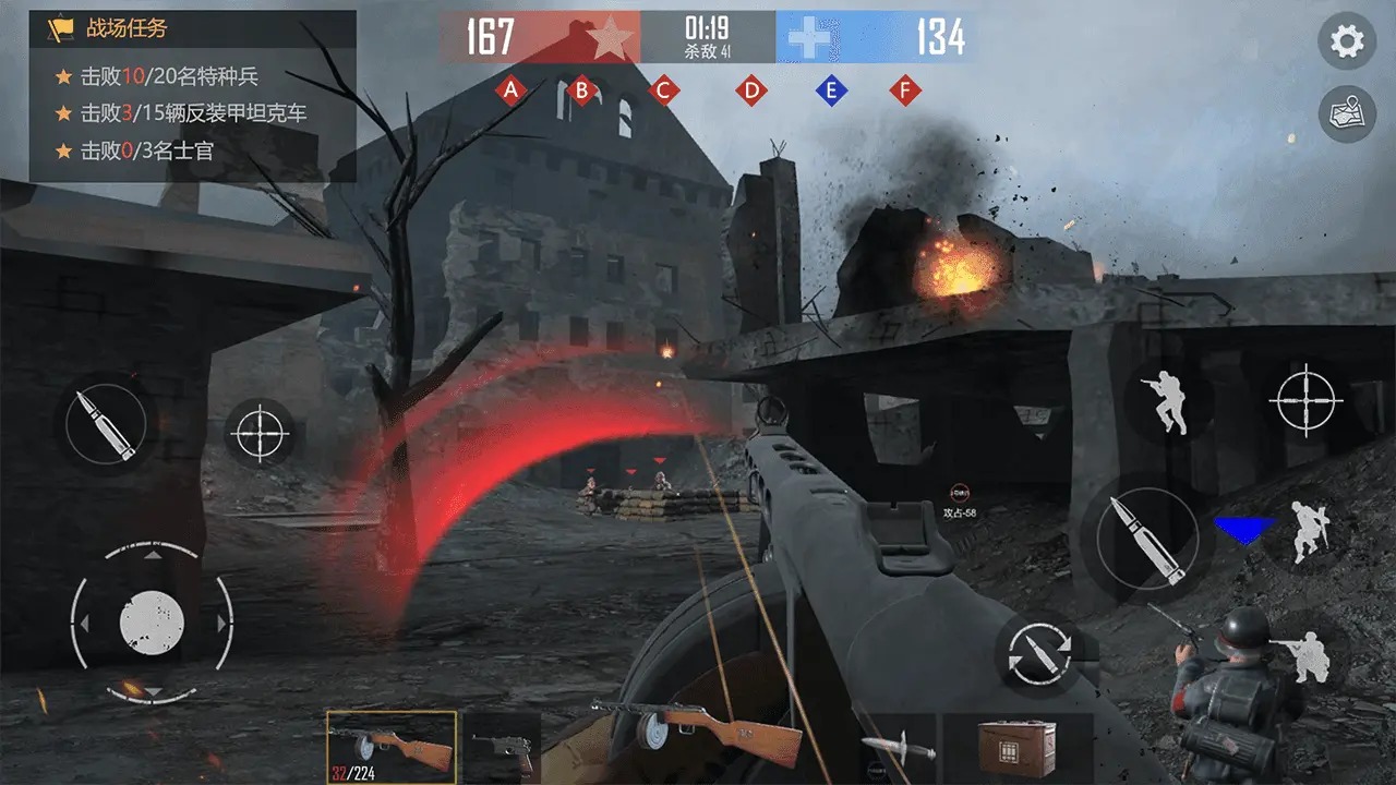 1、游戏内主武器42把主武器,12把副武器,还有可以携带各种二战时期经典武器;