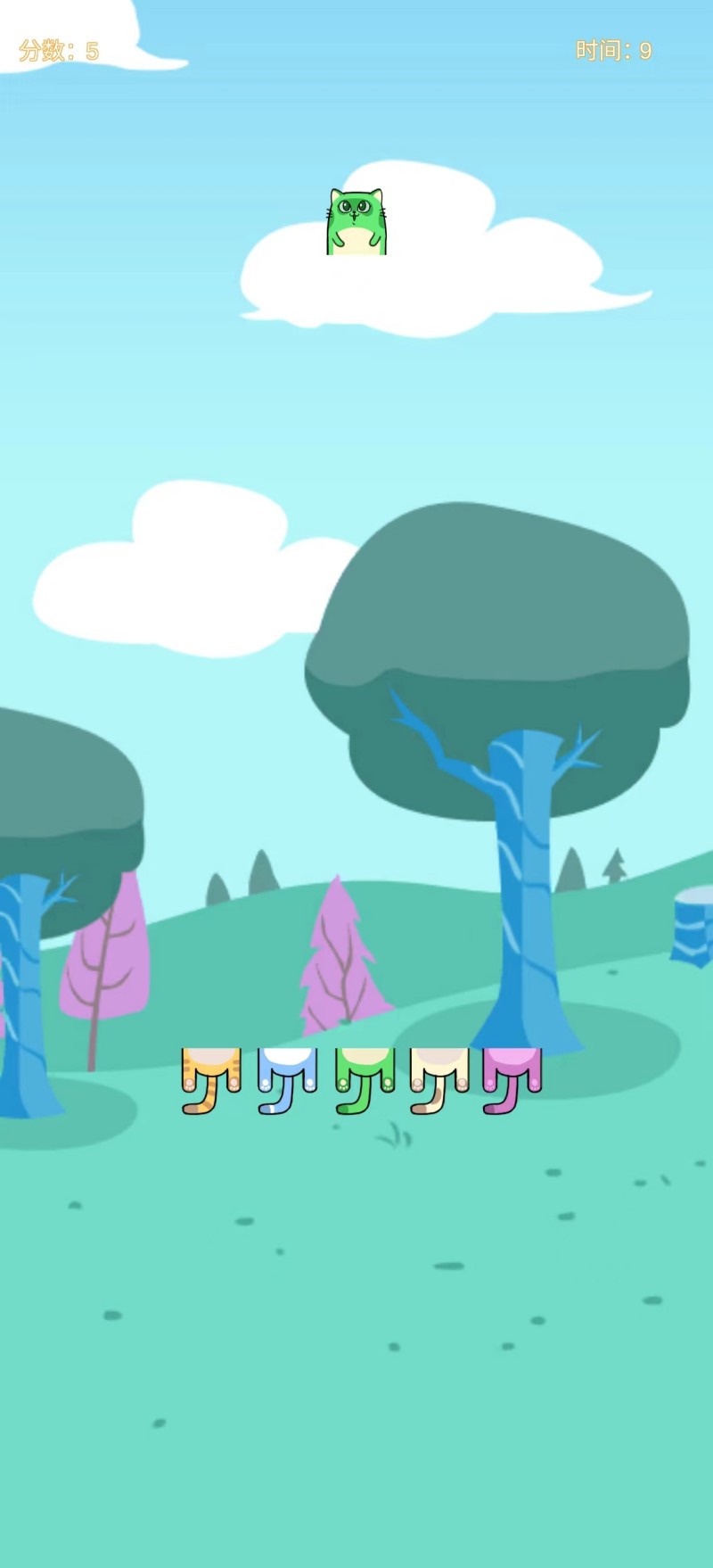 点击头顶对应猫猫颜色的身体 测试眼力看谁最段时间内获得分数最高;