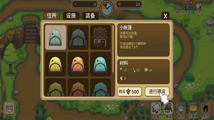 2.玩家可以和自己的猫咪一起到处冒险,还可以一起泡温泉、种植蔬菜等等,玩家可以收集到很多的小猫咪,跟它们一起进行露营。