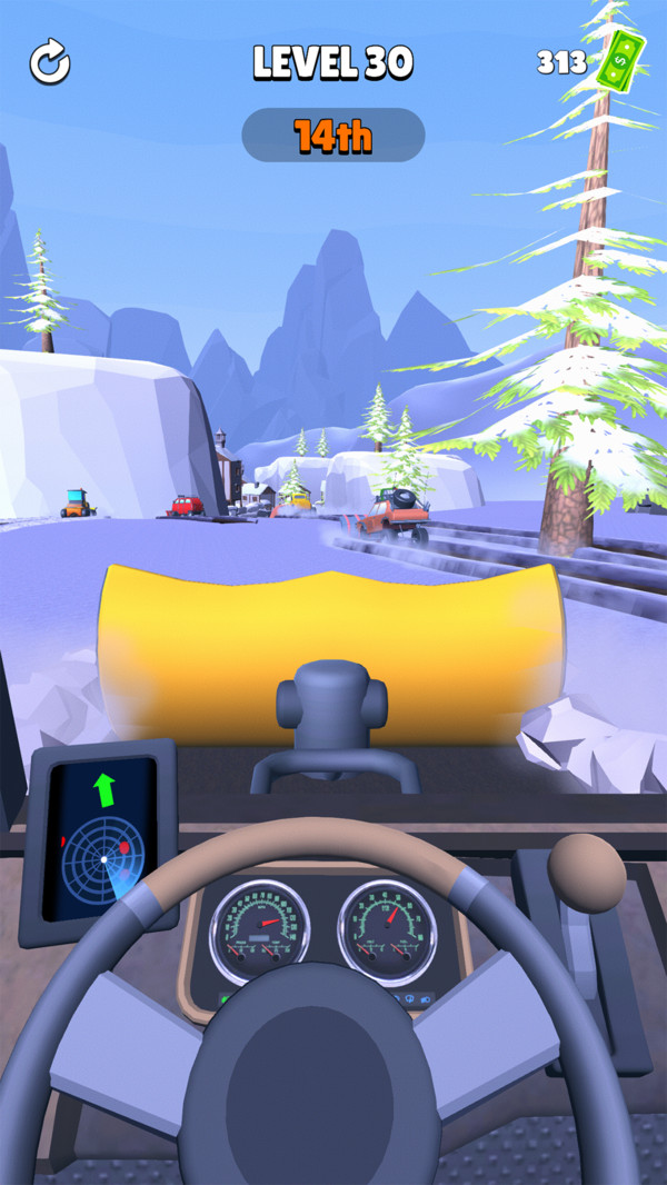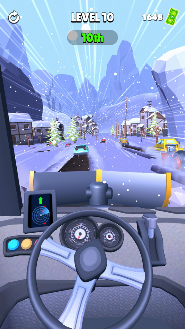 1.你需要驾驶你的铲雪车为其他的小车进行开导,避过各种各样的障碍物。