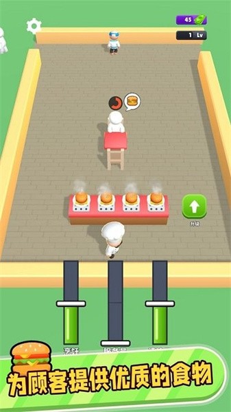 1、一款非常有趣的美食制作模拟游戏,我们将继承汉堡店,成为一家汉堡店的厨师