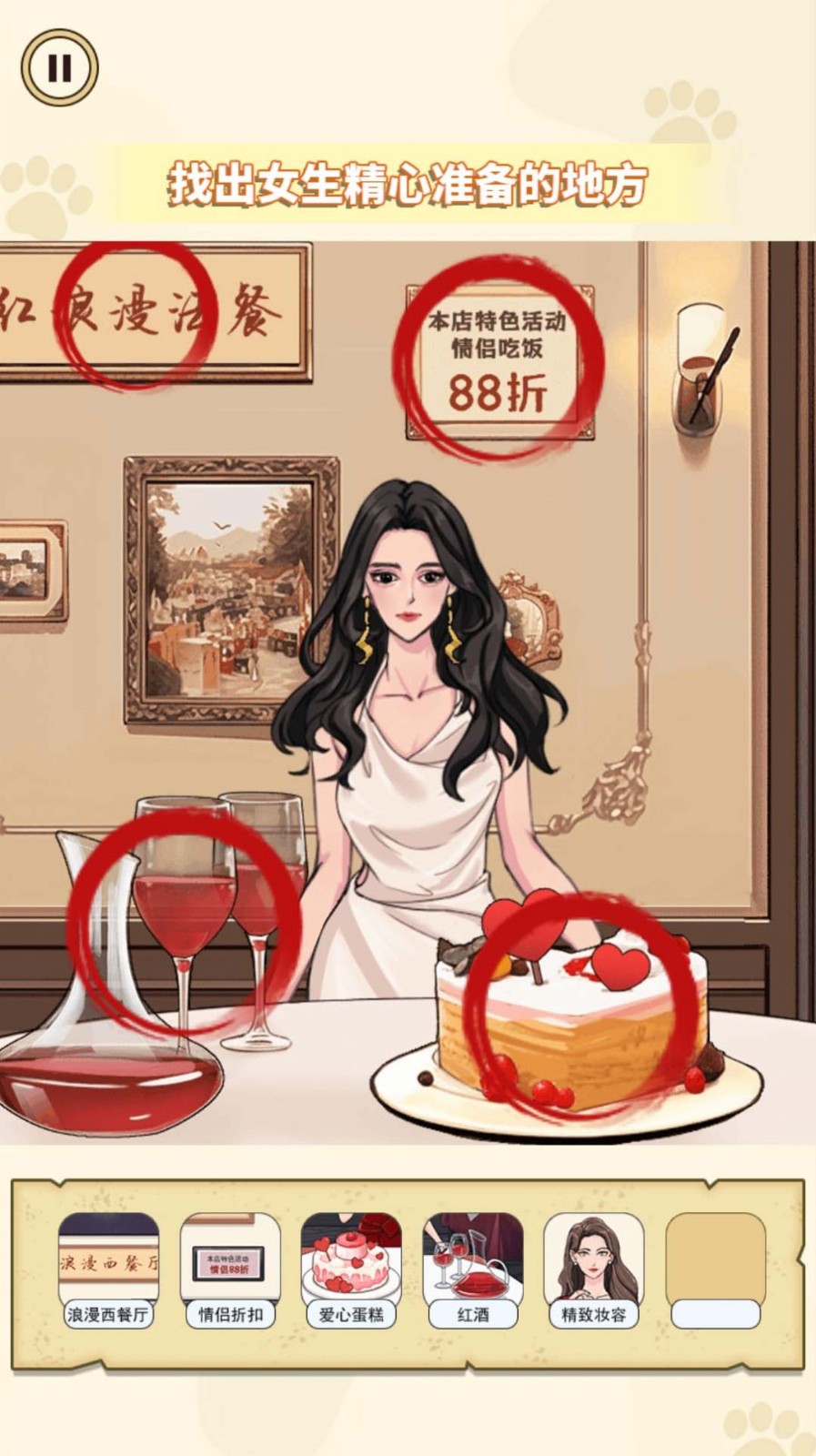 1、找出出轨证据是一款休闲找茬类游戏,通过观察图片细节