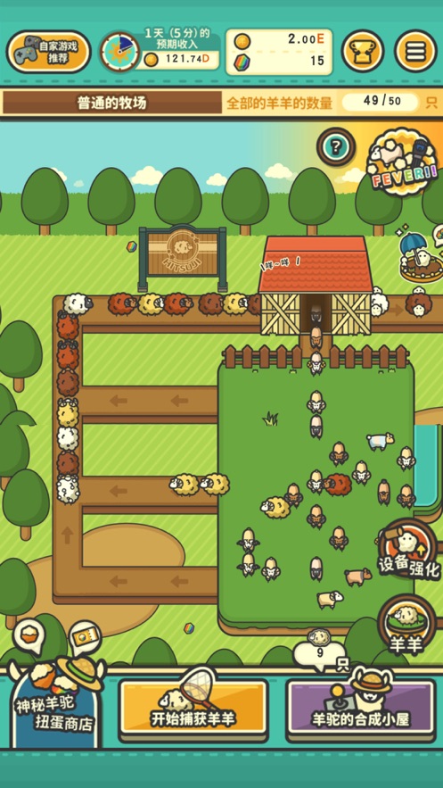 在狂热模式中剪羊毛,混合羊群,合成更高等级的羊羊,开启扭蛋。