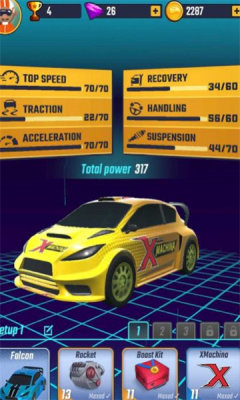 3、自定义赛车:游戏中提供了丰富的赛车改装选项,玩家可以根据自己的需求和喜好进行赛车的改装,并进行不同的调校,让赛车在赛道上更具竞争力。
