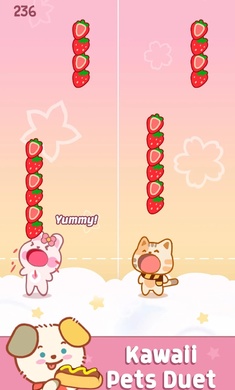 宠物二重唱是一款很休闲有趣的音乐节奏游戏,这里的游戏玩法很简单,玩家需要控制小猫来吃掉落的草莓,十分考验玩家的敏捷度,需要玩家快速的反应过来,这里的游戏素材非常丰富,这里的音乐背景很多都是相当轻松,可以帮助玩家放松心情,赶紧来试试吧。
