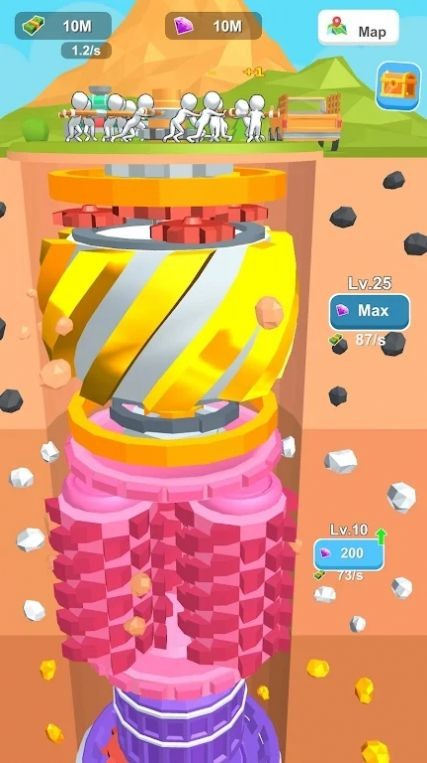 地下采矿冒险游戏当中有着超级多的采矿任务等着我们去很好的完成,这款游戏当中的各种挑战都是相当的多的,全新的采矿机会都等着我们去很好的把握好,一定要在这些地下城当中去把这些矿产资源去很好的挖掘出来,不过想要去把这些矿产资源很好的采出来的前提是我们要有着更加专业的工具。