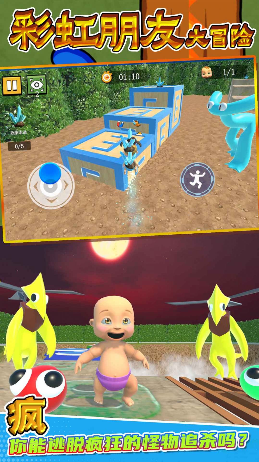 彩虹朋友大冒险是一款冒险游戏,玩家需要在游戏内躲避怪物的追捕,收割各种不同的物品完成各种任务,这里的游戏过程十分的有趣,丰富的游戏场景带来不一样的游戏内容,这里的逃脱过程十分的刺激,有着许多刺激的元素玩家都是可以体验的,感兴趣的玩家赶紧来试试吧。
