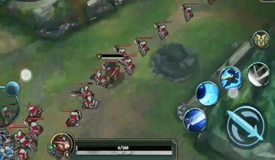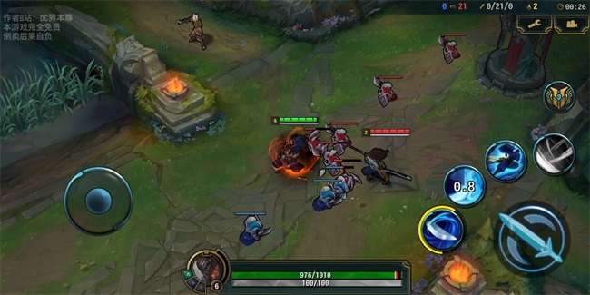 3、在游戏过程中,在对付小兵和打桩时展现出更好的微操作,左侧的转盘为玩家移动英雄提供了流畅操作亚索的空间,右侧的技能释放栏储存亚索的技能和普攻按钮;