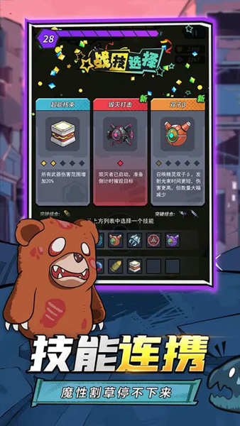 3、【肉鸽秘宝 梦幻开局】海量武器助阵,技能专属定向提升,全局道具更能全面增幅,分分钟横扫全场。