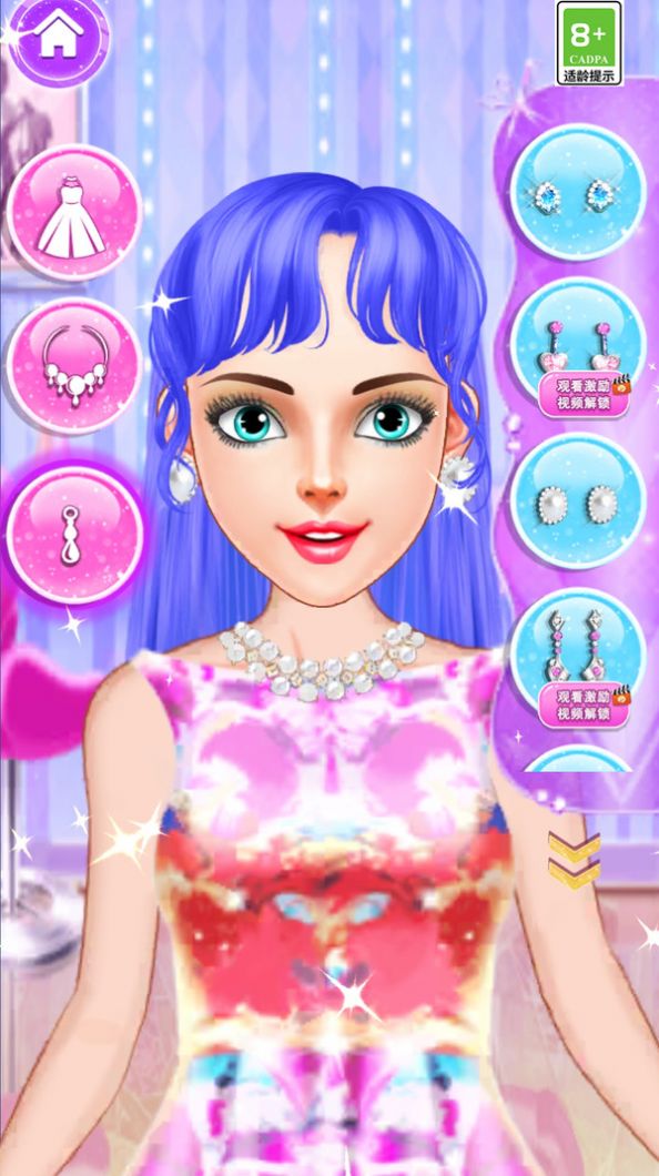 2、你需要帮助自己的角色去打扮,让她可以成为派对中最好看的一个人哦;