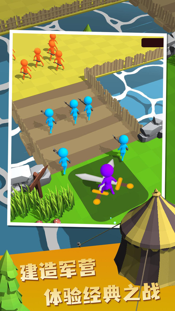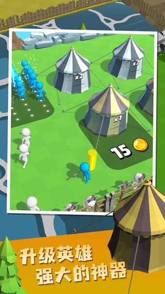2、开始刺激的战斗比赛,不断升级你的士兵,组成最强阵容。发动攻击,消灭所有敌军,然后与BOSS战斗。