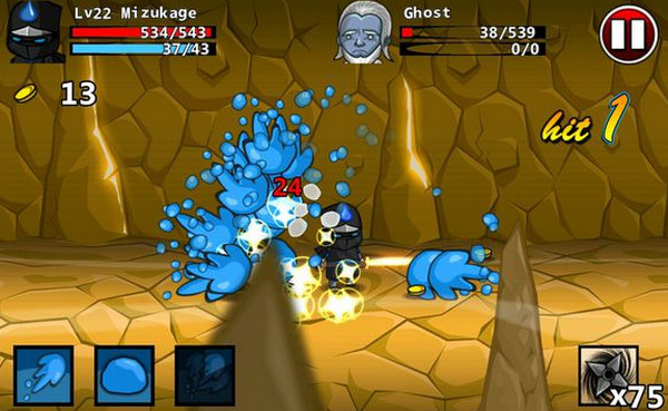 1、玩家只需按住屏幕即可继续战斗,前进,点击屏幕即可自由攻击。有四位忍者供你选择;