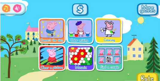 这款游戏以粉红猪为游戏背景,让我们的孩子可以快速的进入到游戏的状态中去。