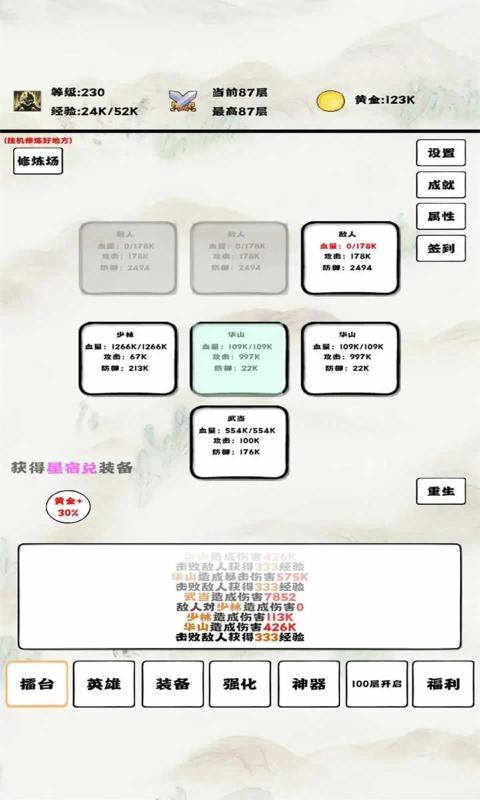 《自动冒险者的淬炼之路》是一款结合武侠放置的游戏;