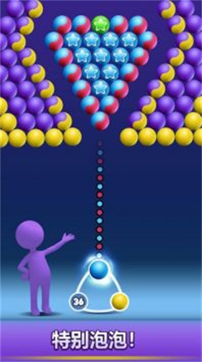1、游戏采用高品质制作,精美的画面和流畅的操作,让你身临其境地沉浸在泡泡消除的世界中。