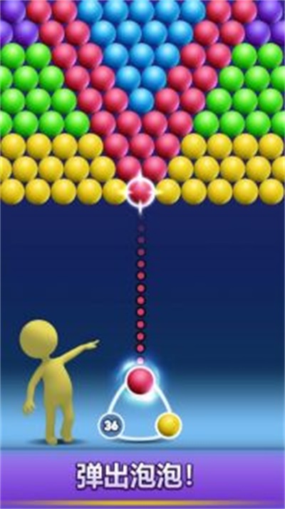 2、简单的手指点击和调整瞄准线控制方式,让你能够轻松消除不同颜色的泡泡,尽情挑战自己的技巧。