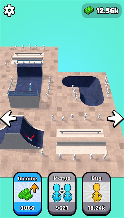 1、放置合并建设独特滑板运动场,解锁更多滑板元素;