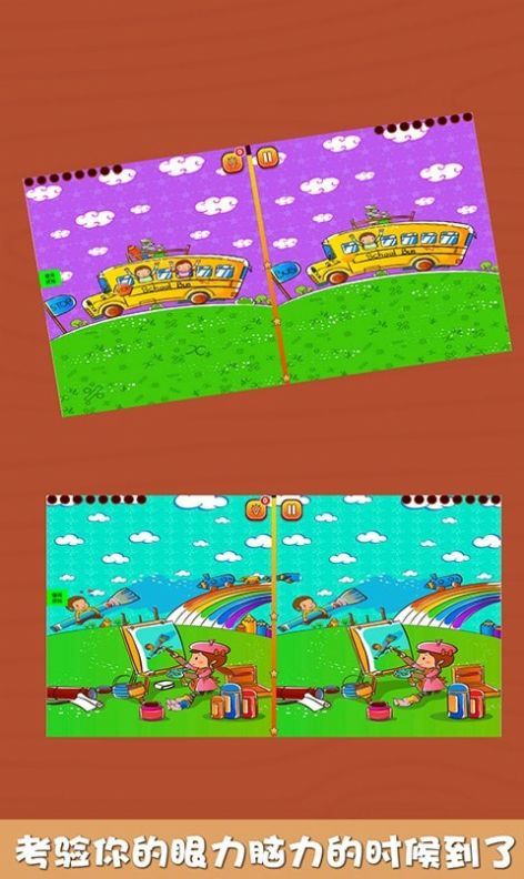 2、这是一款有趣且具有教育意义的儿童游戏。爸爸妈妈可以和宝宝一起玩这个找茬游戏。