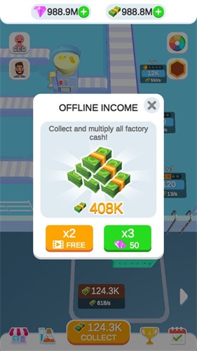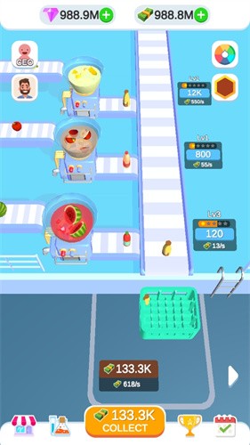 1、闲置果汁厂是一款模拟工厂游戏,玩家可以经营一座属于自己的工厂。