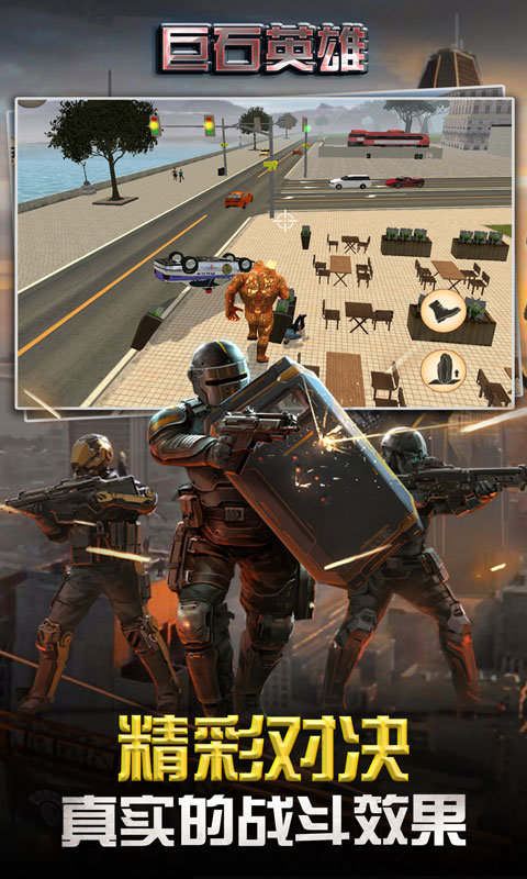 巨石英雄是一款非常好玩的手机超级英雄题材游戏,在这款游戏中玩家们能够体验到最优质动作游戏体验,在这里你将要扮演一位强大的石头人英雄,虽然你拥有铁憨憨一样的石头人外表,拥有强大的力量以及攻击力,你能够变身打败各种的反派来守卫你的城市,没有变身的时候你能够拿上武器进行射击,玩法多样,赶快下载吧。