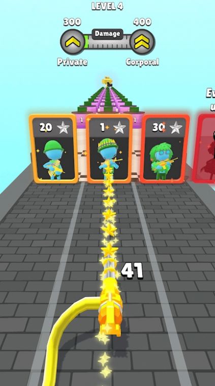 军队战斗跑是一款非常好玩的手机跑酷射击游戏,在这款游戏中玩家们需要拿上自己的武器装备来消灭地图上的目标,在这里你能够选择各种的提升机制来提升你的部队人数数量以及武器的输出弹幕,让你拥有更加强大的能力来帮助你消灭你面前的障碍物,更多的趣味关卡等待玩家们前来挑战,赶快下载体验吧。