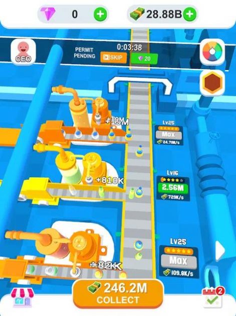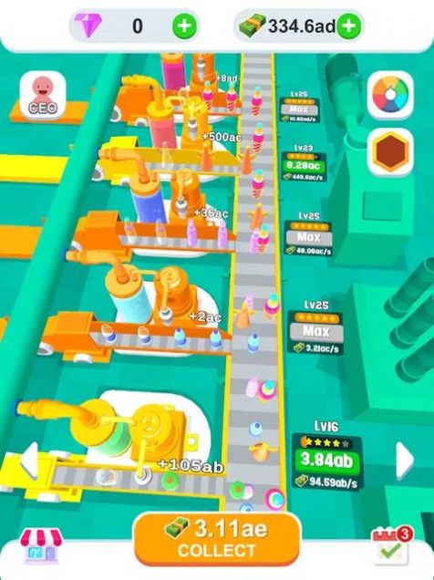 2、在游戏中不断升级设备并提升工人能力,从而提高生产效率,增加利润和声望;