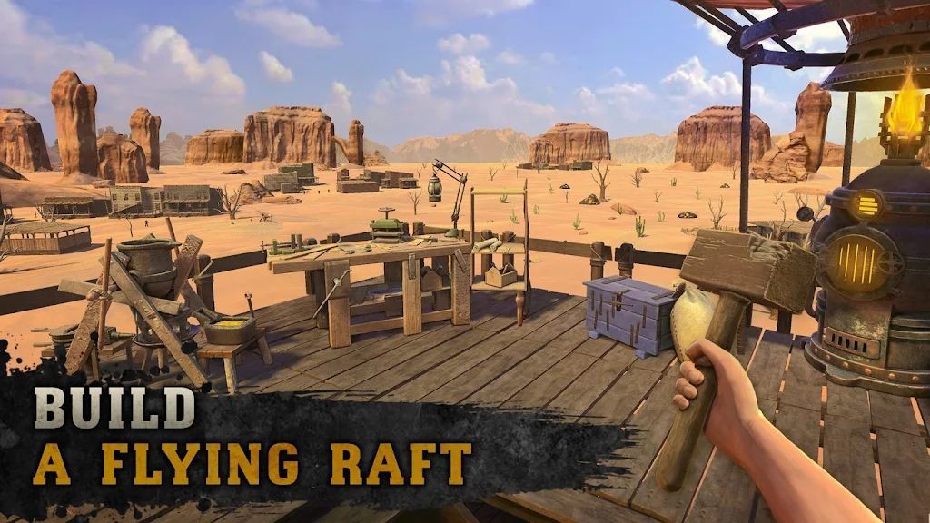 身处一个广阔而艰苦的沙漠环境,需要建造木筏和搜集资源来生存下去。