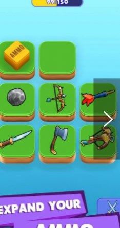 2、玩家需要点击屏幕来进行射击,射击方向和弹药属性可以通过合并不同的弹药来调整。