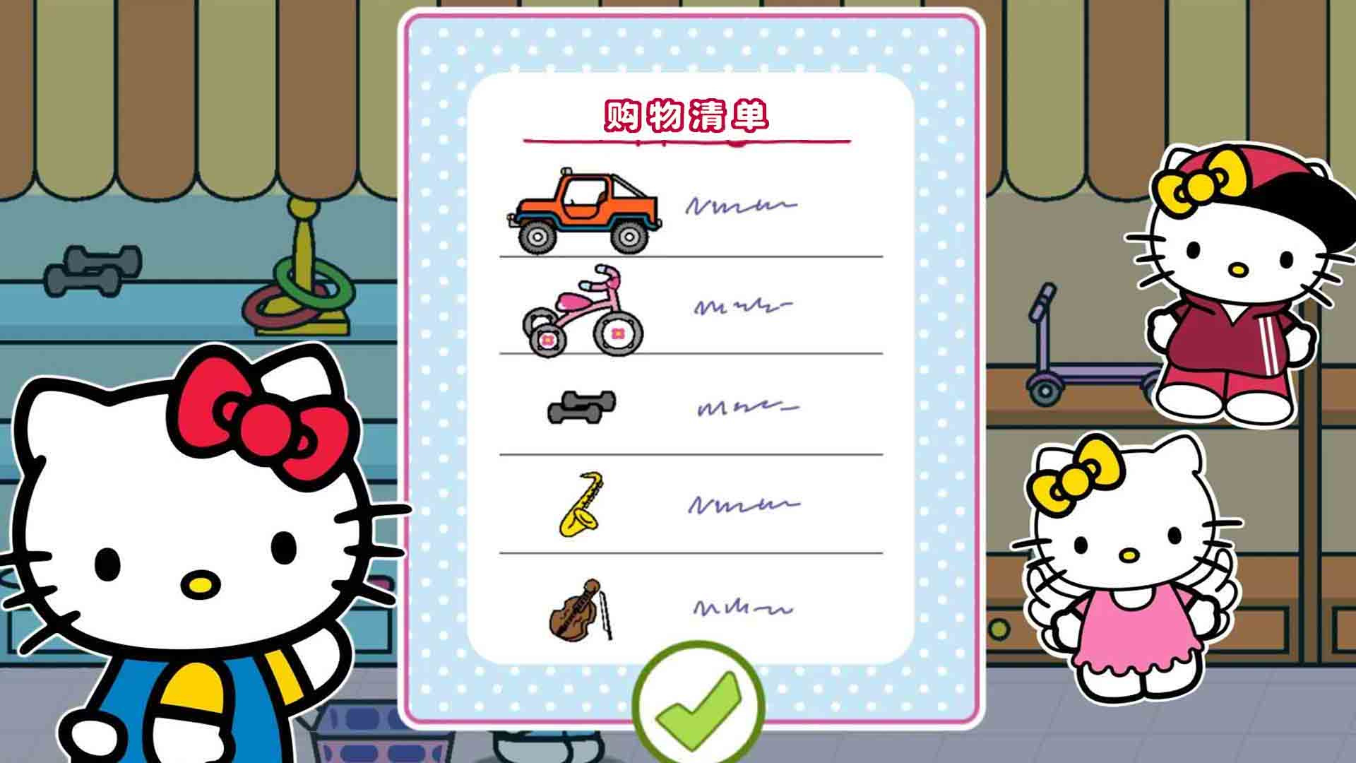 3、除了经营超市,还可以与各种角色进行互动,比如和凯蒂猫朋友们一起玩耍,或者和苛刻的顾客进行互动;