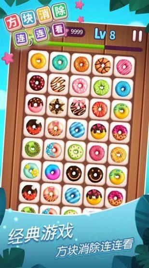 方块消除连连看是一款非常好玩的手机趣味消除闯关游戏,在这款游戏中玩家们能够体验到最趣味的消除玩法,玩家们要在游戏中通过连线的方式来连接相同的方块,在这里你能够看到各种美味的甜甜圈,游戏中超多不同的方块主题任你自由选择,海量的益智关卡等你来挑战,赶快下载体验吧。